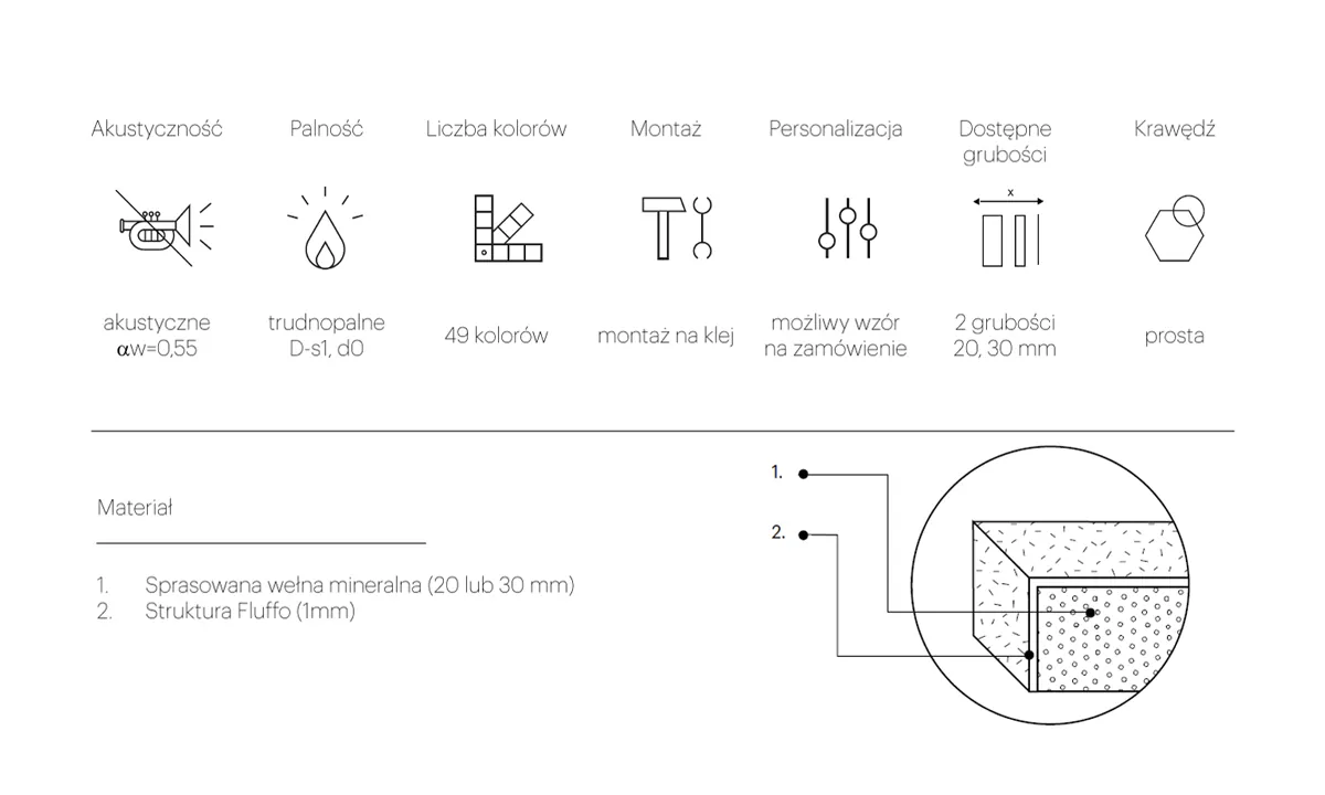 Nasze panele są bardzo łatwe w montażu, do którego potrzebny ci będzie tylko klej. Panele dostępne są w dwóch grubościach: 20 i 30 mm. Wszystkie informacje techniczne na temat paneli ściennych trudno zapalnych z naszej oferty znajdziesz w dołączonych dokumentach PDF. Opublikowaliśmy tam m.in. raport klasyfikacyjny w zakresie odporności na ogień.