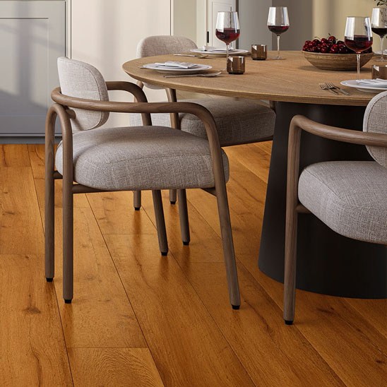 Dzięki luksusowym deskom winylowym w stylu dębu Twoje wnętrze zyska naturalny wygląd. Wzór dębu w ciepłym odcieniu południowego słońca.