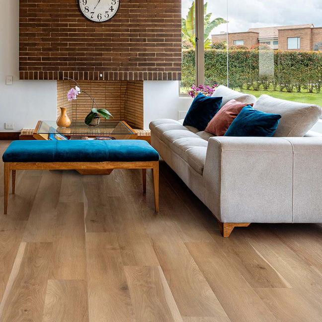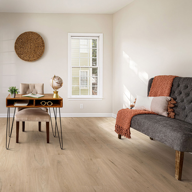 Natomiast opcja Click System została wyposażona w rdzeń typu SPC (Stone Polymer Composite), niezwykle twardy, odporny na różnice temperatury i stabilny wymiarowo. Spód pokryliśmy zintegrowanym podkładem akustycznym, za sprawą którego podłoga jest cicha i przyjemna w użytkowaniu. Grubość całkowita wesji Click to 6.0 mm. Niezawodna i sprawdzona technologia w nowej oprawie – Solen Long Plank.
